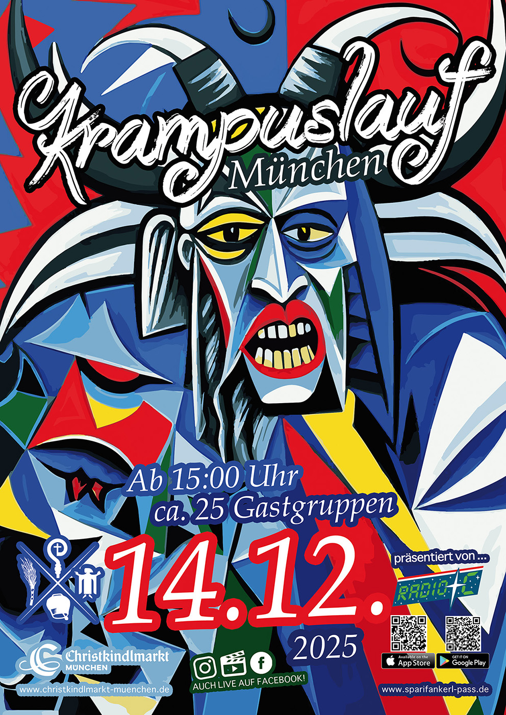 Großer Krampuslauf ab 15:00 Uhr über den Marienplatz mit ca. 25 Gastgruppen aus Bayern, Österreich und Italien.